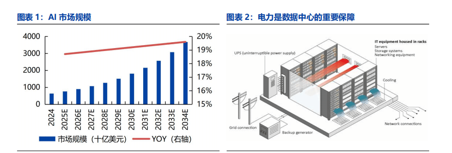 数据中心是AI的核心基础设施,电力是重要保障。为高效、安全存储和处理海量数据而设计的设施。随着云计算与人工智能兴起,其重要性持续提升,已成为支撑全球数字化转型的核心基础设施。现代数据中心核心包含服务器、存储系统、网络设备等关键计算硬件,同时配备提供电力、冷却及安防保障的专用辅助基础设施。
