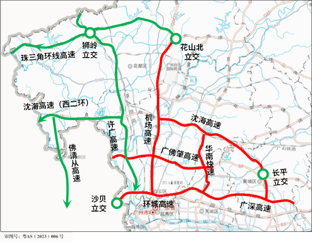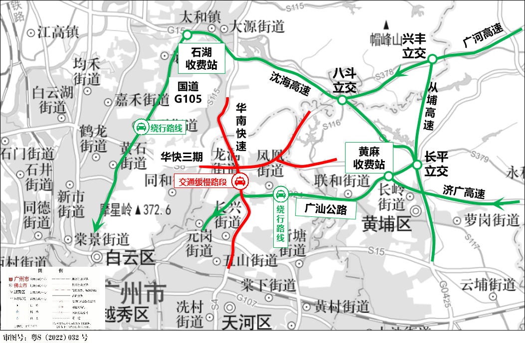 韶关、湖南方向来车,可优先选择乐广高速通行,避开机场高速、北环高速等核心拥堵路段;江西方向来车,建议经大广高速、从埔高速绕行,减少主城区互通枢纽的通行压力。