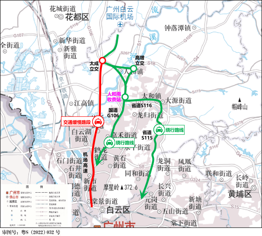 其中,为避开机场北立交、杨荷立交南行行车缓慢,建议大广高速返程旅客在从埔高速或从化收费站经国道G355,通过G105绕行进入市内。