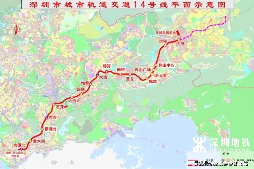 14号地铁线分钟,该线路是从坪山沙田开往福田岗夏北的快速线站到福田岗厦北,用时大约43分钟。