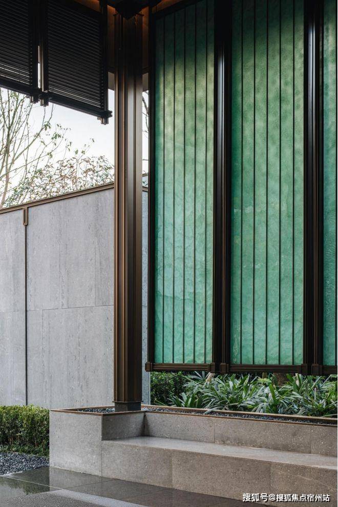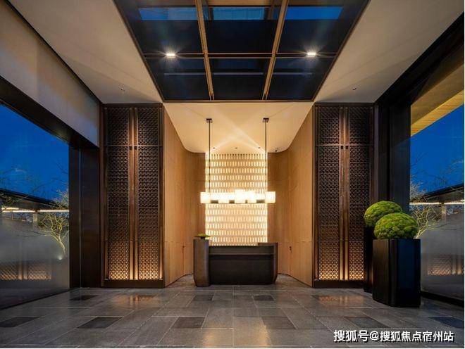 ——在公区入户大堂内,造型别致的壁灯格外惹眼,其灵感来自于“中国古典豆形灯”;落壁灯则是以古铜不锈钢搭配仿透光云石灯具,营造出朦胧的光晕氛围,颇具东方意蕴。