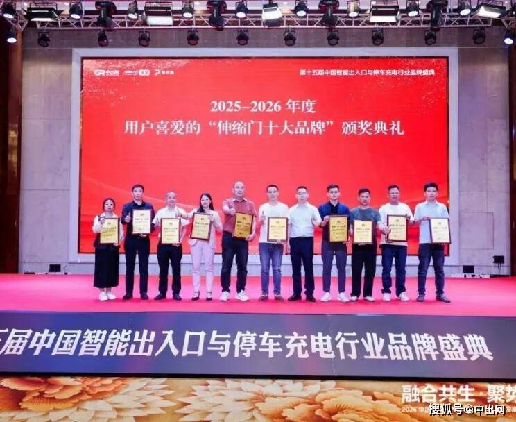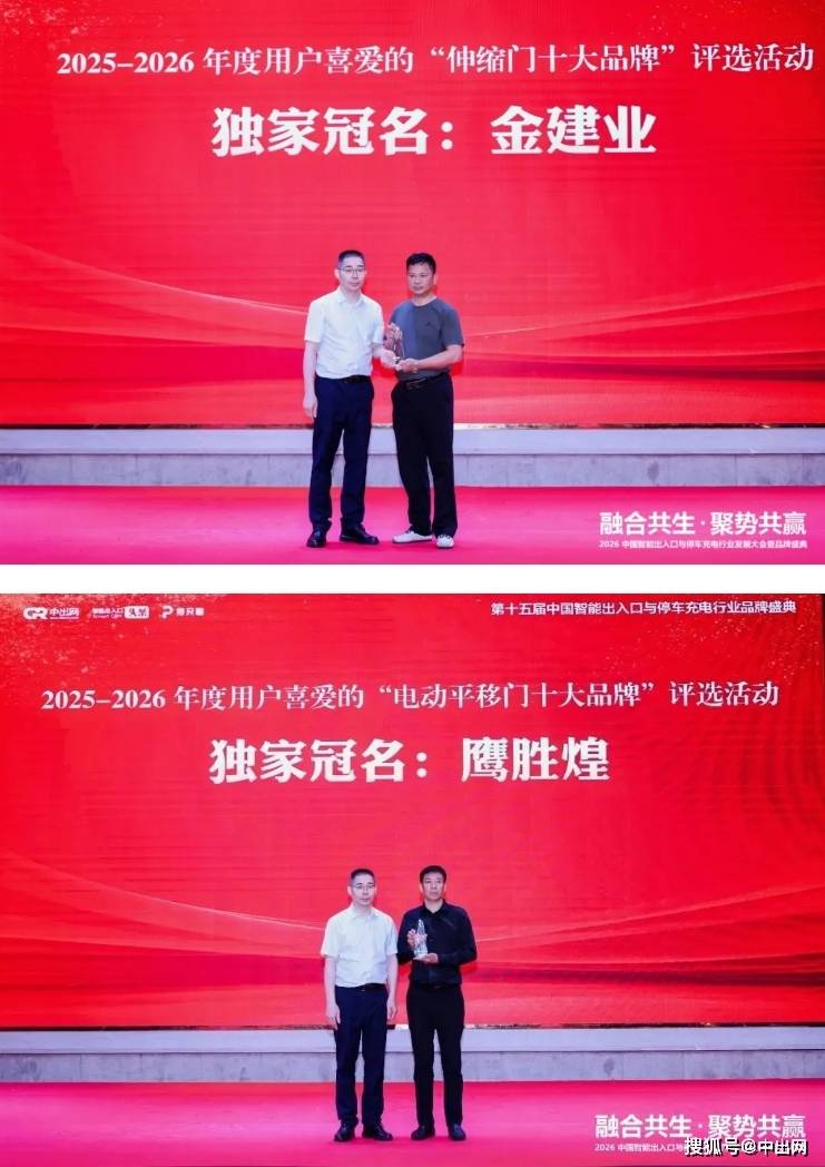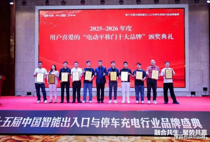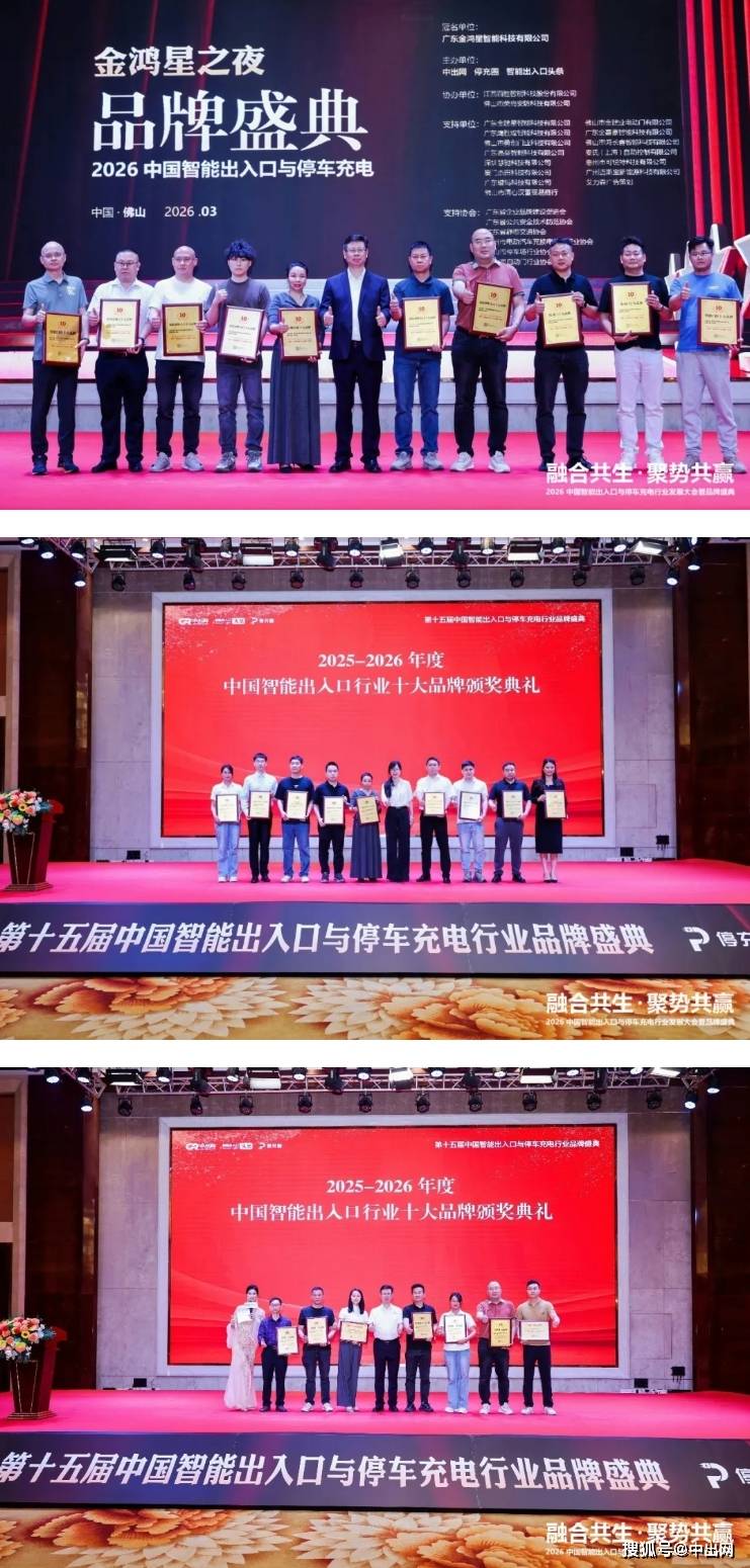 荣获2025-2026年度用户喜爱的智能出入口行业十大品牌的品牌有:海康威视、大华、熵基、安居宝、艾科智泊、金鸿星、南北、道垒、金建业、耐氏、家运来、荣高、建星、阔宅、圣田、金建业、畅顺龙、华胜辉、可锐特、杰田、高垒、安建隆、建星、金建业等。佛山市自动门协会会长罗明辉;停充圈创始人、中出网总编陈希分别为获奖品牌颁奖;